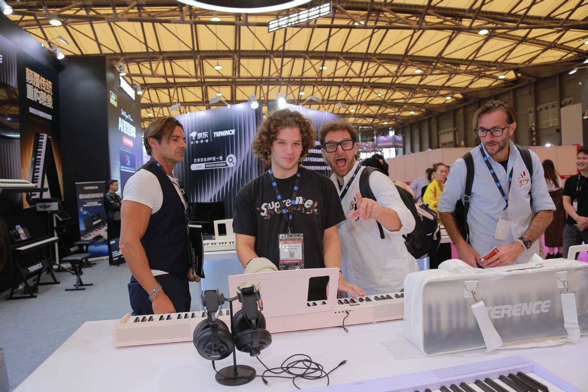 在展會現(xiàn)場,特倫斯展廳人氣火爆,觀眾們紛紛駐足欣賞這些創(chuàng)新產(chǎn)品。特倫斯品牌的工作人員也積極向觀眾介紹產(chǎn)品的特點(diǎn)和優(yōu)勢,并邀請現(xiàn)場觀眾試彈,感受折疊電鋼琴的獨(dú)特魅力。許多觀眾在試彈后,都對特倫斯折疊電鋼琴的音質(zhì)和手感表示贊賞,認(rèn)為這類型的產(chǎn)品不僅適合初學(xué)者,也適合專業(yè)樂手使用。