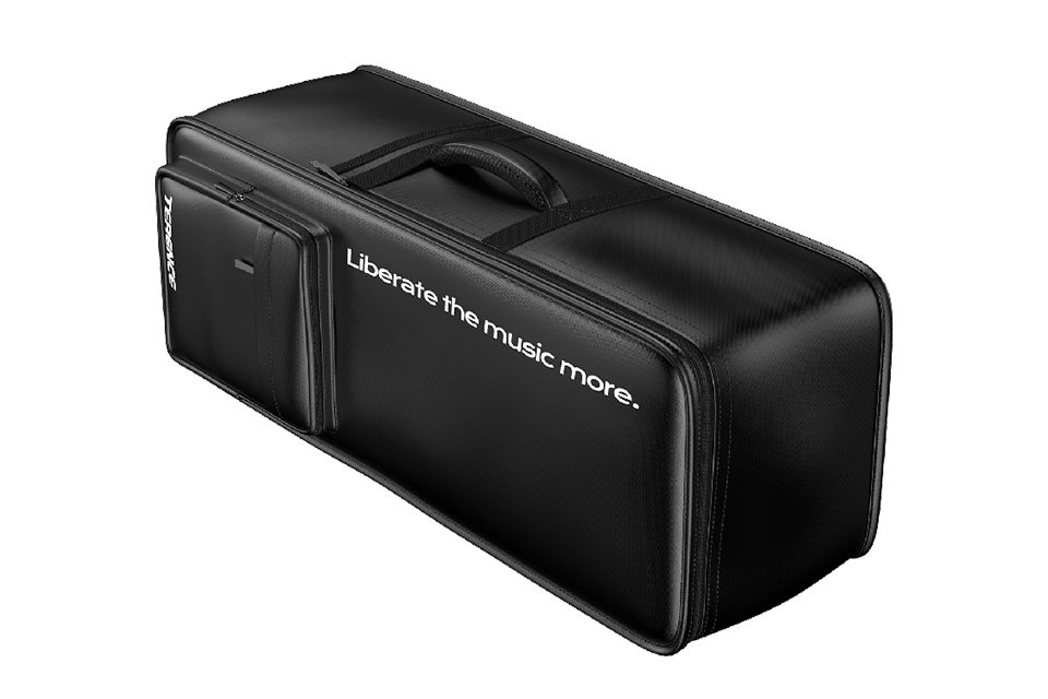 曲譜架收納處位于琴包內(nèi)側(cè),內(nèi)標(biāo)注了正確的收納方式。配件收納倉(cāng)可容納耳機(jī)、踏板、電源和平板等物件。 |